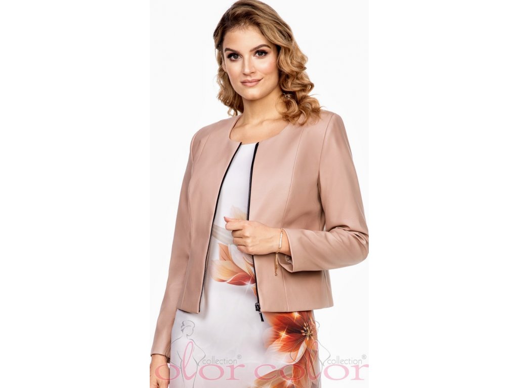 Kávově béžové sako z imitace kůže je na zip, s dlouhým rukávem, je celé podšité. Lehký měkký materiál koženého vzhledu má jemnou strukturu, je velmi příjemný na omak, dokonale se přizpůsobí postavě.